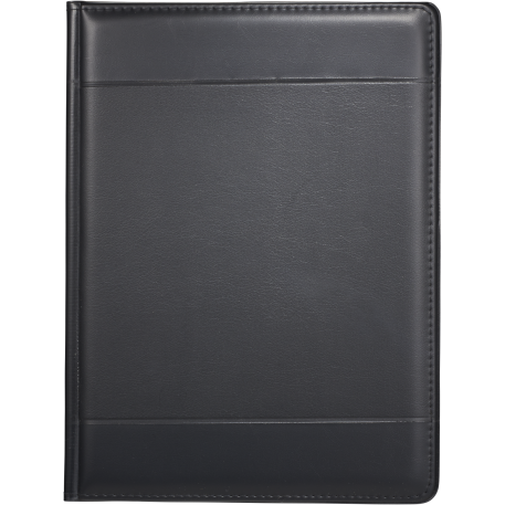 Documents pocket. Business card pockets. Elastic pen loop. Includes 8.5" x 11" writing pad. Pen not included.