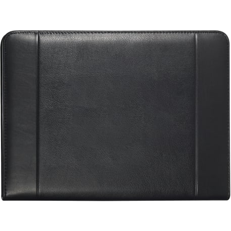 Zippered closure. Elastic pen loop. Documents pocket. 2 business card holders. Clear calendar management pocket that doubles as a page marker. Comes with undated calendar insert. Includes 8.5" x 11" writing pad. Pen not included.