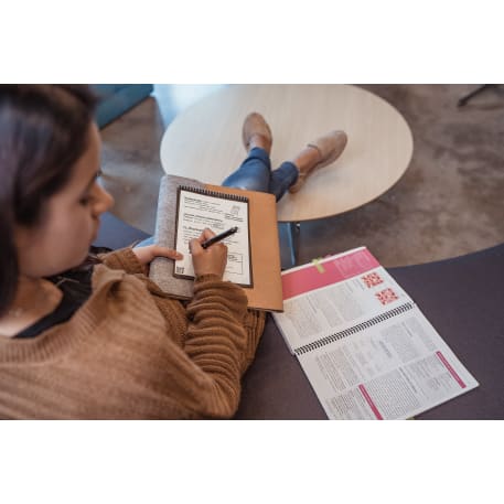 The Rocketbook Letter Flip Notebook is designed for every classroom, office, and personal mission. The synthetic, white lined college ruled and dotted paper allows you to write smoothly with a Pilot Frixion pen, then magically wipe clean with a damp cloth to reuse again and again! Use the Rocketbook app to blast your notes, plans, lists, and big ideas to your favorite cloud service for proper organization. Then, erase and reuse your Flip for your next adventure! This hard cover notebook includes 36 pages.