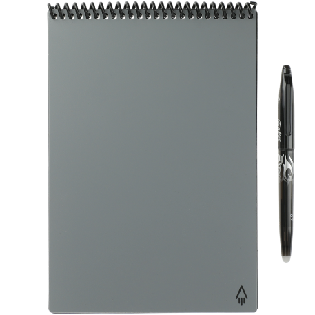 The Rocketbook Executive Flip Notebook is designed for every classroom, office, and personal mission. The synthetic, white lined college ruled and dotted paper allows you to write smoothly with a Pilot Frixion pen, then magically wipe clean with a damp cloth to reuse again and again! Use the Rocketbook app to blast your notes, plans, lists, and big ideas to your favorite cloud service for proper organization. Then, erase and reuse your Flip for your next adventure. This hard cover notebook contains 36 pages.