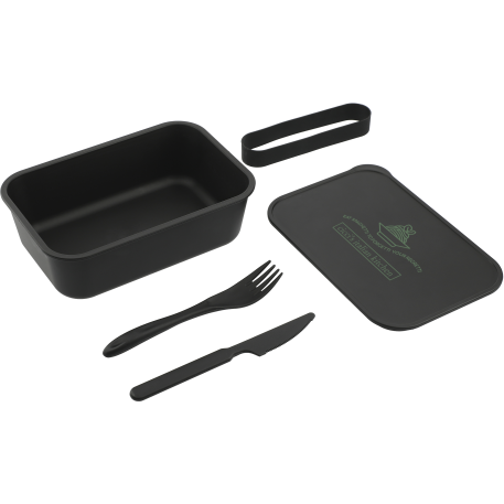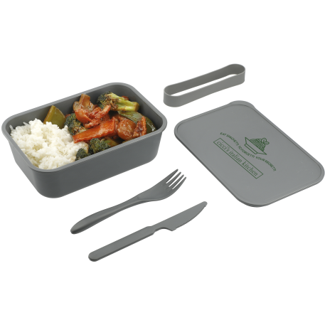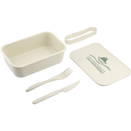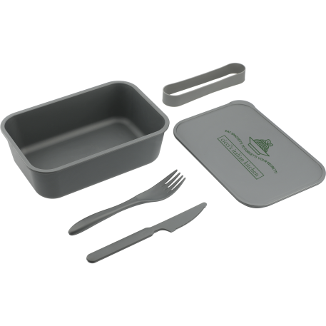 The perfect solution to a meal on the go this set includes a fork and spoon. Everything is secured together with the included band. The set is made from PLA, a bio plastic made from polyactic acid that is created with plant starches. The food storage box is not suitable for liquids and cannot be used in the microwave. Through a partnership with 1% For The Planet, one percent of sales of this and all EcoSmart products will be donated to nonprofits dedicated to protecting the planet.