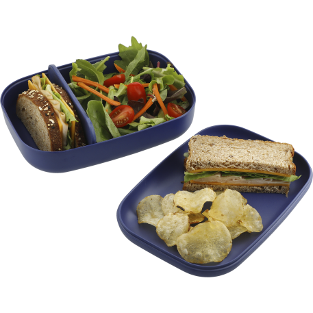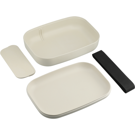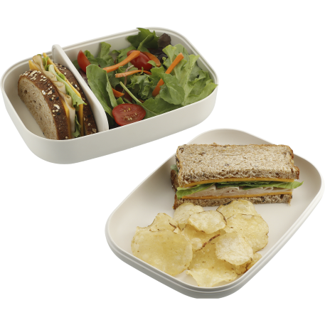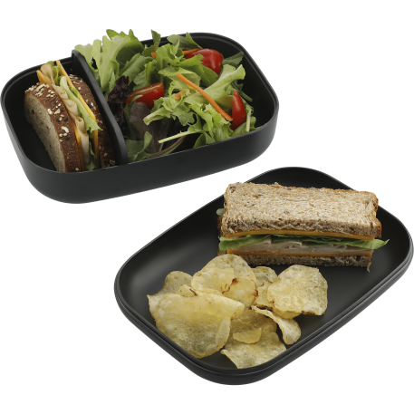 This FSC certified bamboo fiber bento box features a removeable divider and the lid doubles as a plate. This is the ultimate plastic baggie replacement!