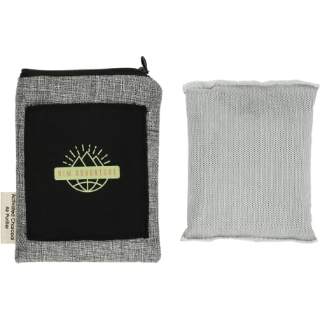 The Odor Absorbing Travel Pouch features bamboo charcoal that can help absorb odor and keep any space fresh. These reusable bags work great anywhere, in our suitcase, your gym duffel, your shoes, or even in your car. Instructions on the reverse side of the woven label help guide users on how to use the piece. Place the pouch outside for an hour once a month to “recharge”. The bamboo charcoal is good for up to 2 years.