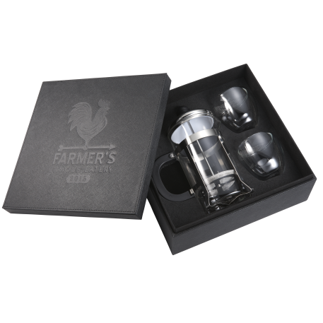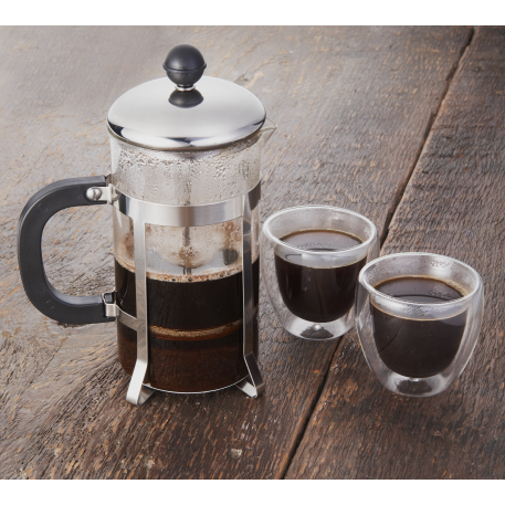 This is the perfect set for coffee lovers. It comes with a coffee press and 2 double wall coffee glasses. The set can be stored in the sleek ultra-hyde Modena box when not in use.