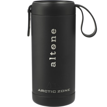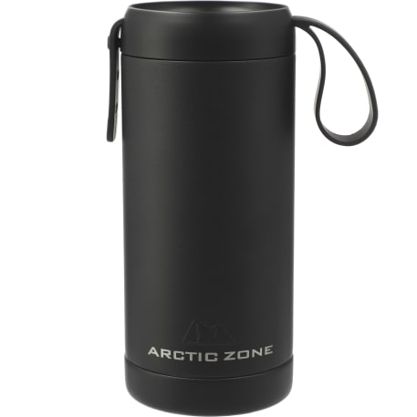 The innovative, on-trend Arctic Zone® Titan 20oz Meal Container is copper-insulated and holds 560ml, with a detachable snack storage space that holds an extra 150ml. It includes a foldable spoon that conveniently stores on the lid of the snack container. It also includes an adjustable silicone strap. Keeps food cold for up to 24 hours and hot for up to eight.