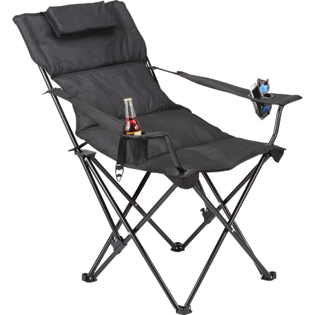 This Premium Reclining Sports Chair provides the durability you need with a steel frame that can hold up to 400lbs, and the added comfort of a padded design with three (3) adjustable reclining positions and a removable pillow. Includes a mesh cup holder, insulated cup holder, bottle opener and a study 600D carrying bag. Some assembly required, chair must be inserted into bag.