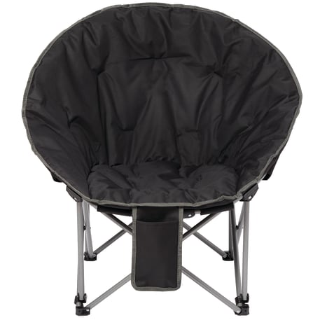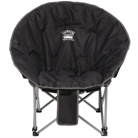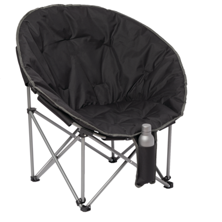 With an extra sturdy steel frame and durable 600D fabric this chair has a loading weight limit of 400lbs. Features a unique and comfortable rounded "moon" design with padded construction and a front tech pocket. Includes a study 600D carrying bag. Folded dimensions are 34"H X 10" W x 10" D. Unfolded dimensions are 25.6" H x 20" W x 20" D.