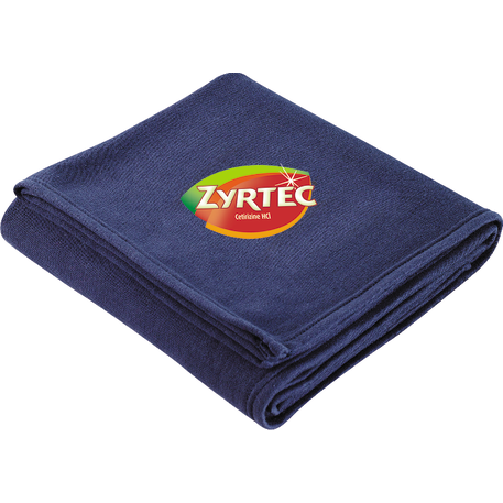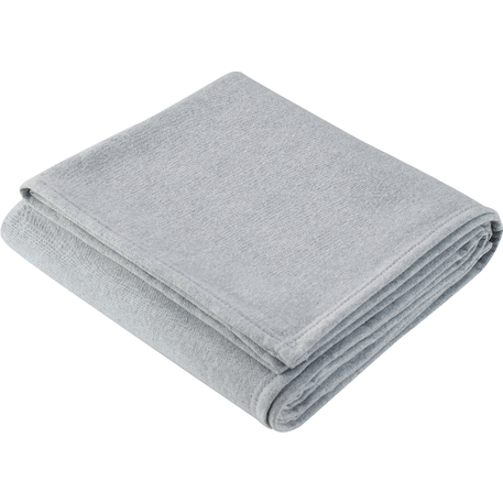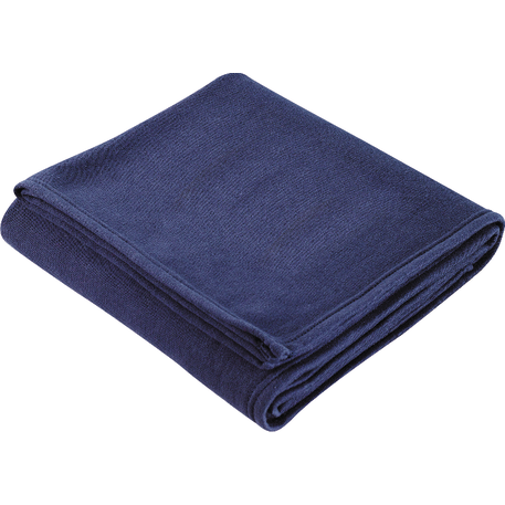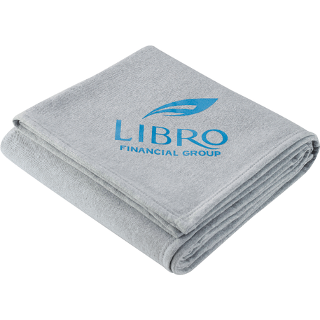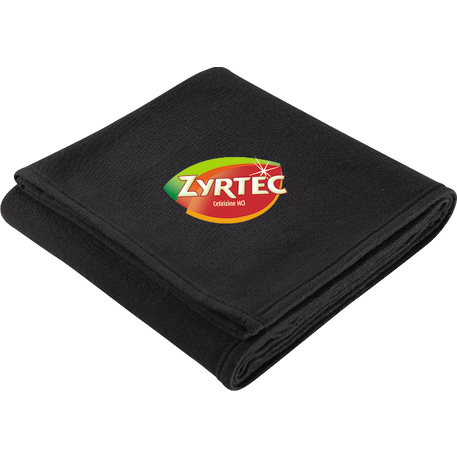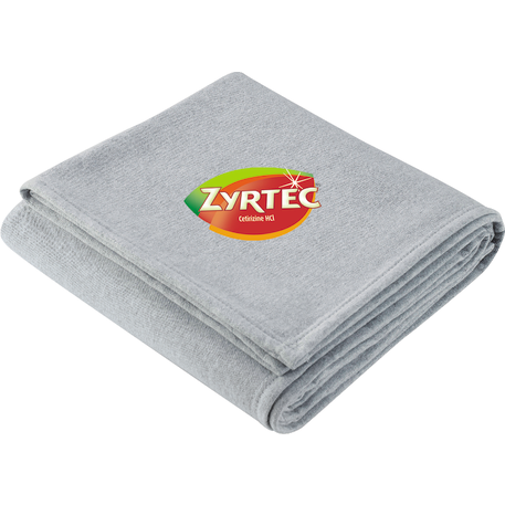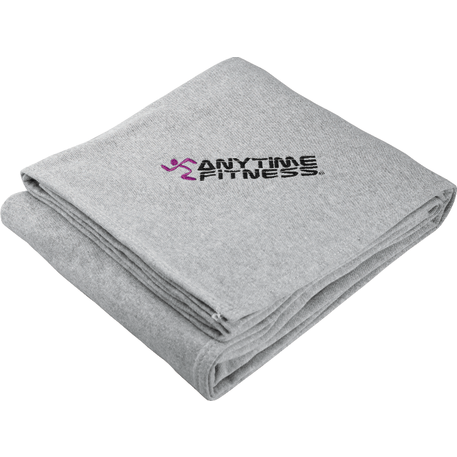 80% cotton/20% polyester hemmed blanket. Open dimensions are 50" x 60" and folded dimensions are 12.5" x 12". Free embroidery run charges on up to 10,000 stitches. This blanket is spot clean only.
