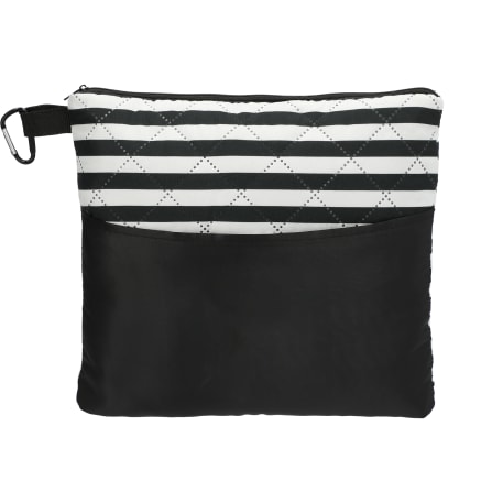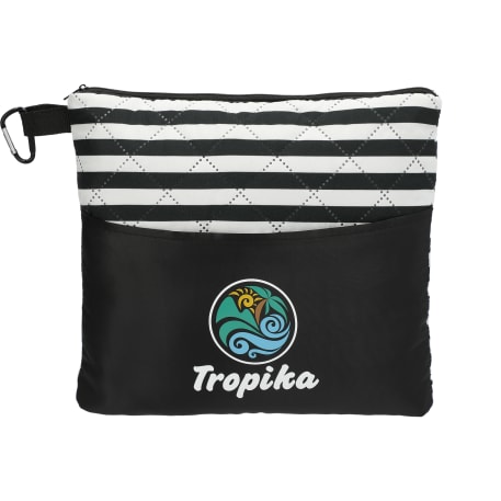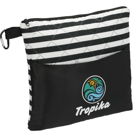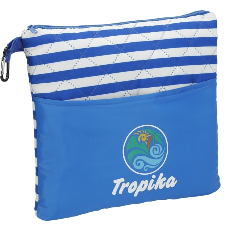 This 23.5"x58" rectangular beach blanket folds nicely into a compact pouch for easy storage and contains a carabiner clip for convenient transportation. The external pouch pocket turns into a hidden compartment that can keep valuables hidden in the blanket while enjoying the water! The blanket comes with a 13"x9.5" pillow which folds up along with the blanket into the zippered pouch. Folded dimensions are 10.5"x12"x3". This blanket is spot clean only.