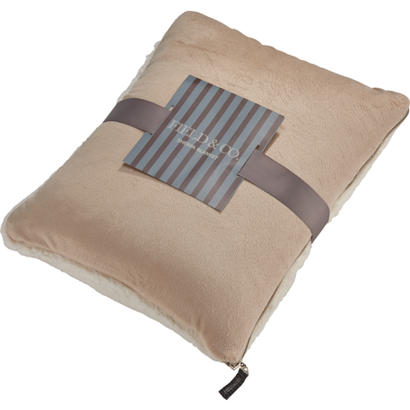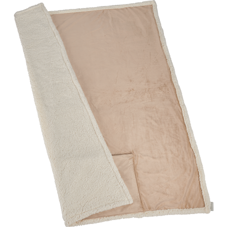 The Sherpa on the Go is first a luxurious and comfortable Sherpa blanket that second can conveniently be folded and converted into a pillow. The blanket measures 50"x60" and has soft microplush on one side and thick 190g Sherpa on the other side providing extra comfort and warmth. The blanket easily folds into a pillow with zipper closure making it easy to take anywhere. Whether using in the car, plane or lounging outside, this blanket offers the best of comfort, style and convenience. Free run charges on embroidery up to 10,000 stitches. Folded dimensions are 18.5" x 13.5" x 3.5". This blanket is spot clean only.
