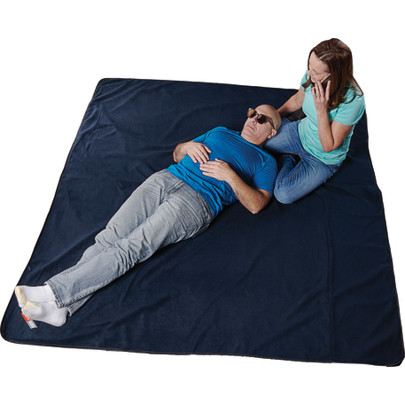 Cozy fleece lining and waterproof backing makes this Oversized Waterproof Outdoor Blanket with Pouch perfect for any outdoor occasion. Not only is this blanket oversized at 72" by 80" but it also comes with a pouch for easy transportation and storage. Pouch is approximately 16in x 12in when packed with blanket. This blanket is spot clean only.