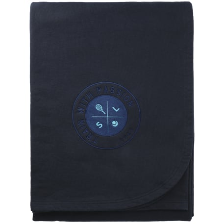 The American Giant Stadium Blanket is made with American Giant's signature heavyweight fleece. This all-purpose blanket is soft and durable. Built for use anytime. Made with remnants left over from hoodie production, so nothing goes to waste. Made in the USA. This blanket is spot clean only.