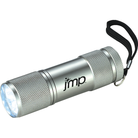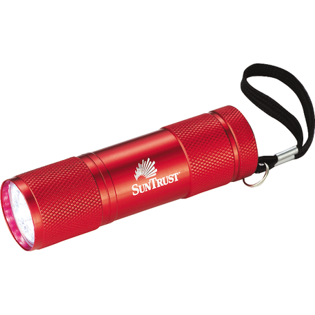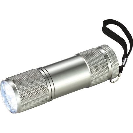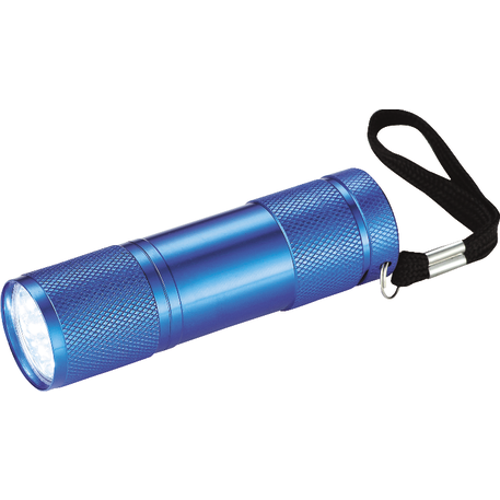 This compact 9 LED flashlight features a push button on/off and convenient nylon carrying strap. 3 AAA batteries included.
