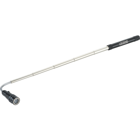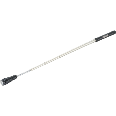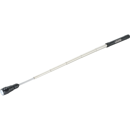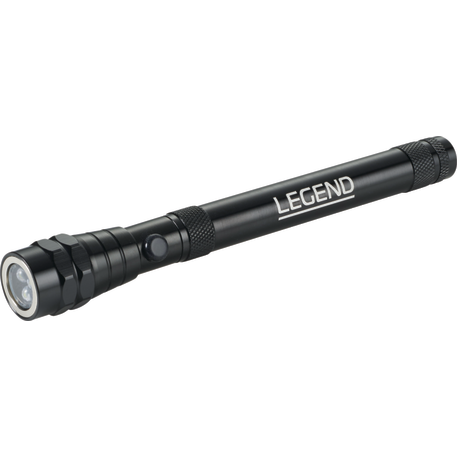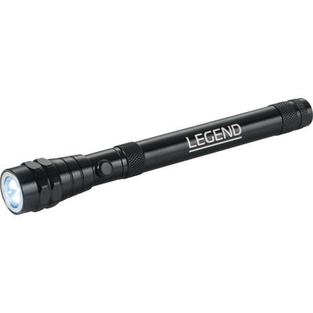 Push button on/off. 3 LED retractable telescopic flashlight with magnet head. 4 button cell batteries included.