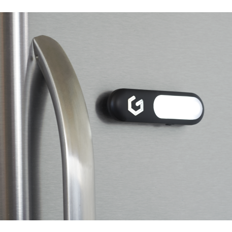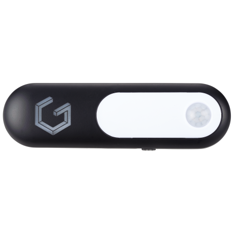 This easy to use sensor light can attach to metal surfaces with a magnet or can be mounted to other surfaces with the adhesive tabs that are included. The light has an on/off button and when on is activated by motion with in 2 meters. The light will shut off automatically after 20 seconds of no detected motion. 2 piece CR2032 batteries included and installed.