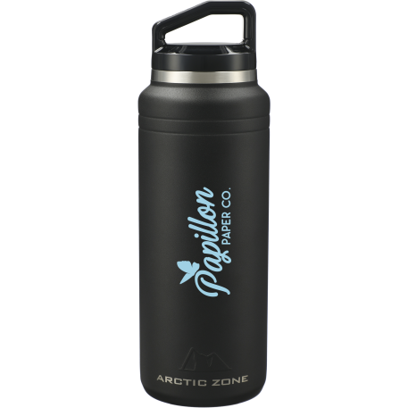 The Arctic Zone® Titan Thermal HP® Copper Bottle 32oz is designed for style and durability. Double-wall, 18/8 grade stainless steel vacuum construction with copper insulation keeps beverages hot for up to 12 hours or cold for up to 48. The powder-coated finish helps prevent condensation on the outside of the bottle. The bottle features a smoke-colored, translucent, screw-on, spill-proof lid and a wide mouth opening for easy cleaning and filling. Leed’s exclusive.