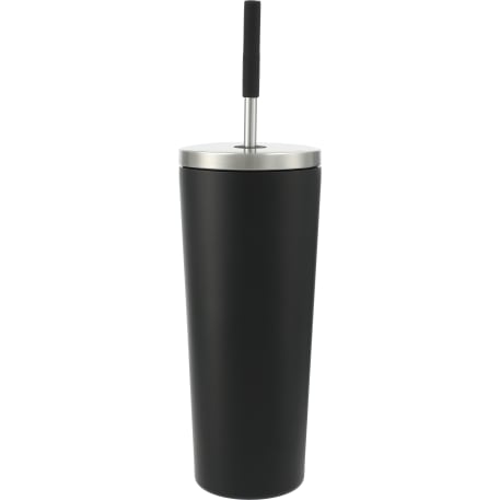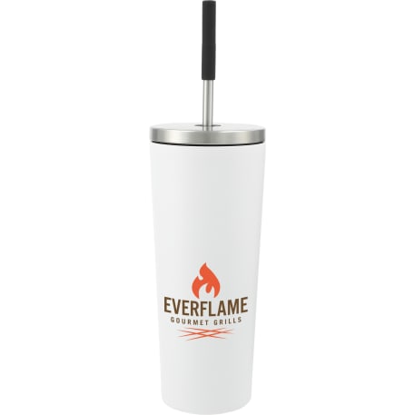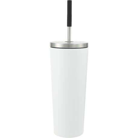 The Maia 2-in-1 Copper Vacuum Insulated Tumbler Kit 24oz is the perfect item for a flexible lifestyle. Kit includes two types of lids, a screw-on straw lid and a screw-on flip closure lid. Durable, double-wall stainless steel vacuum construction with copper insulation, allows your beverage to stay cold for up to 24 hours and hot for at least 8 hours. The construction also prevents condensation on the outside of the tumbler. On-trend, durable powder coating. FSC certified premium gift box is included. 24oz. Note: Drinking hot beverages with the straw is not recommended. Remove lid to allow beverage to cool.