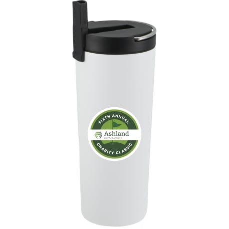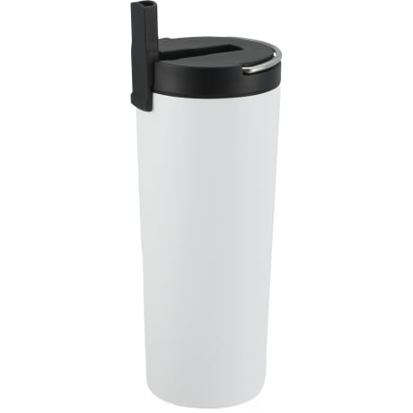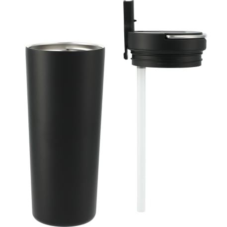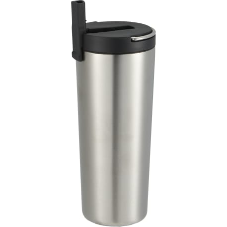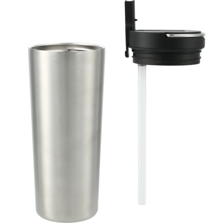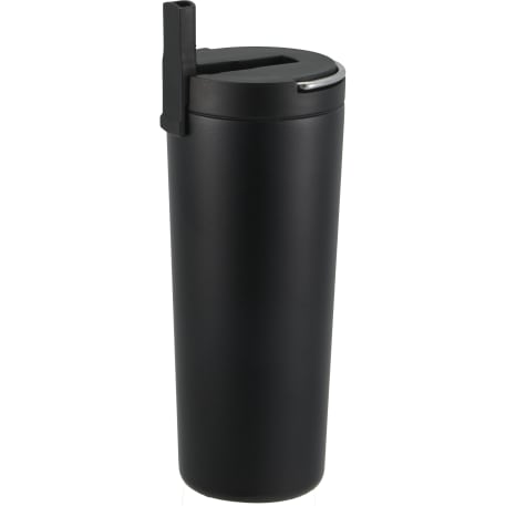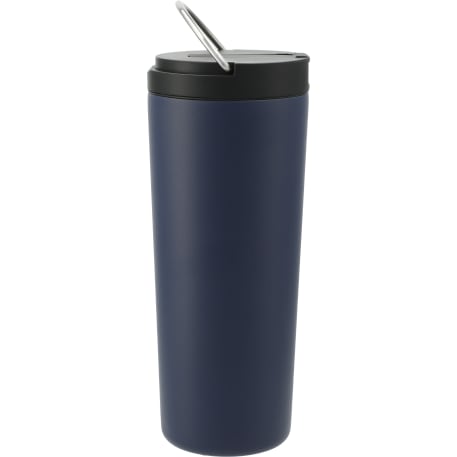 It’s here and just the right size for your daily use! Durable, double-wall stainless steel vacuum construction with copper insulation, which allows your beverage to stay cold for up to 24 hours and at least 8 hours for hot beverages. The construction also prevents condensation on the outside of the tumbler. On-trend, durable powder coating. Easy sipping, screw-on lid with pop-up straw. The intigrated metal loop built into its lid is perfect for on-the-go convenience. Wide opening for comfortable filling and pouring. Fits most car cup holders. 24oz. Leeds exclusive. Note: Drinking hot beverages with the straw is not recommended. Remove lid to allow beverage to cool.