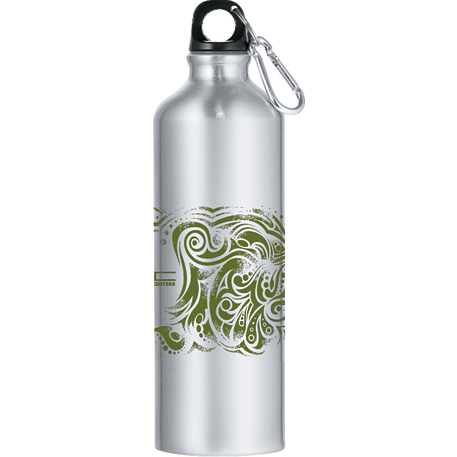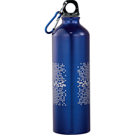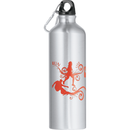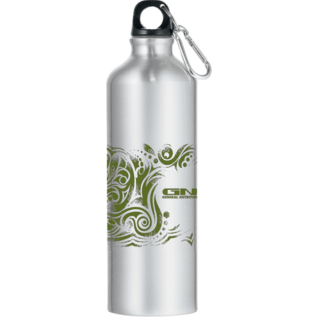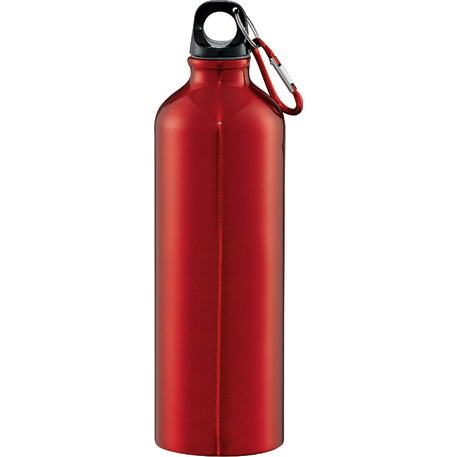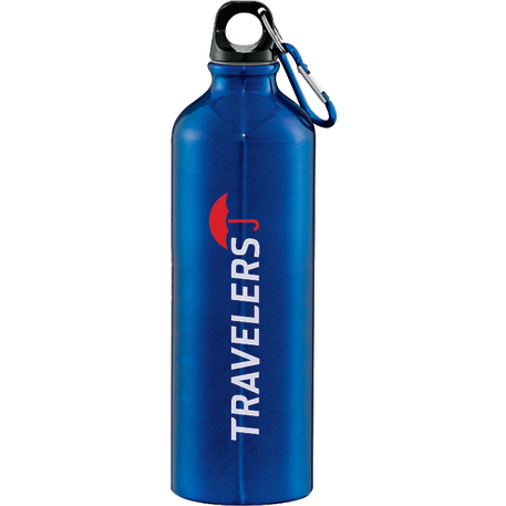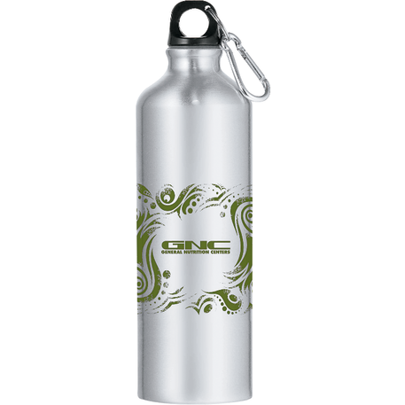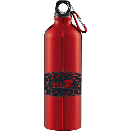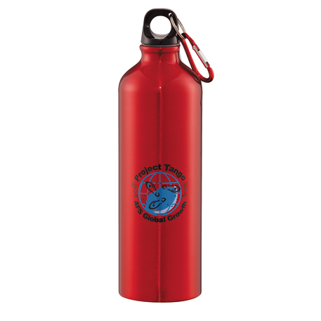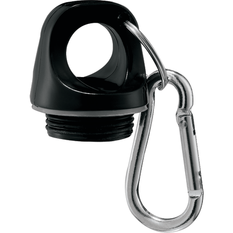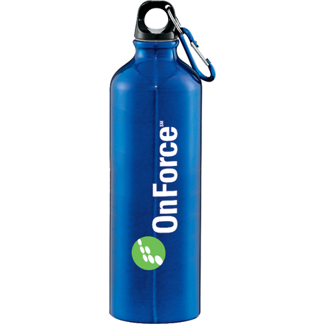 Screw-on lid. Food grade internal liner. Includes matching carabiner. BPA free. 26 oz.