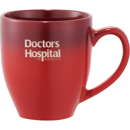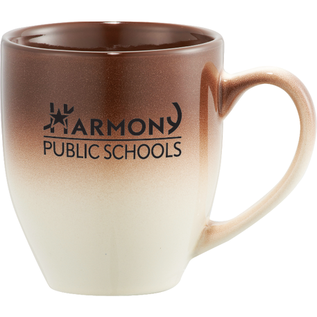 Cozy ceramic mug with a glossy finish and trendy ombre gradient pattern. Choose between color imprinting or our new cutting edge dishwasher safe laser decorating method. 16oz.