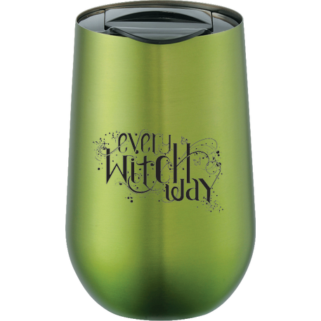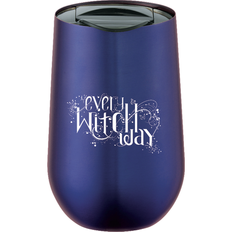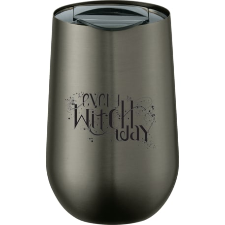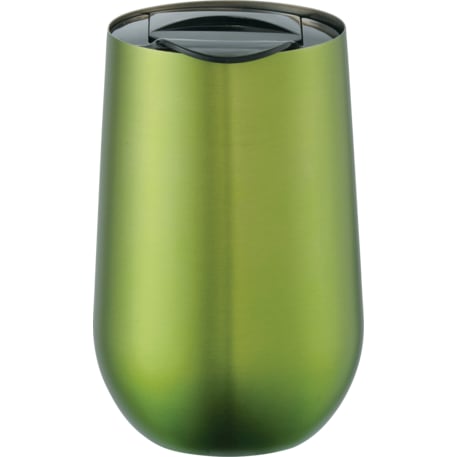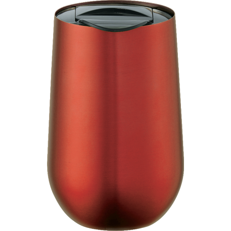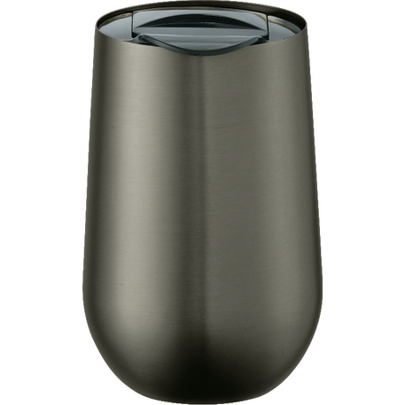 Part of our Clarity trend collection this simple and sleek double wall stainless steel tumbler is compact for an easy fit with most single cup or K-cup coffee maker. Lid is push-on and slides open and closed. Great for use at the office. 14oz.
