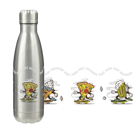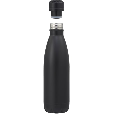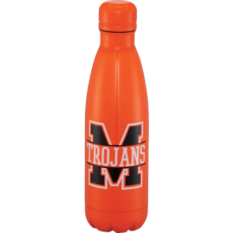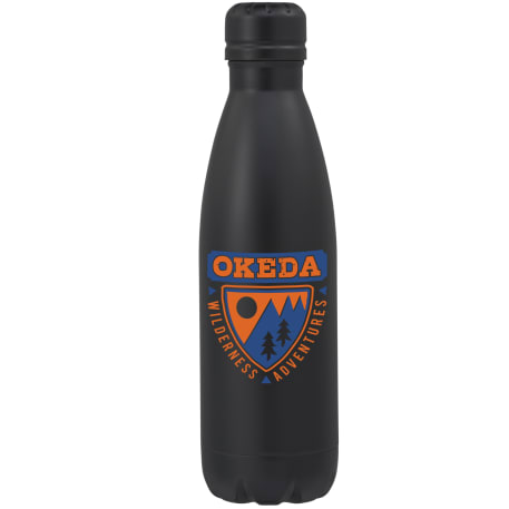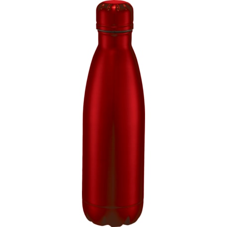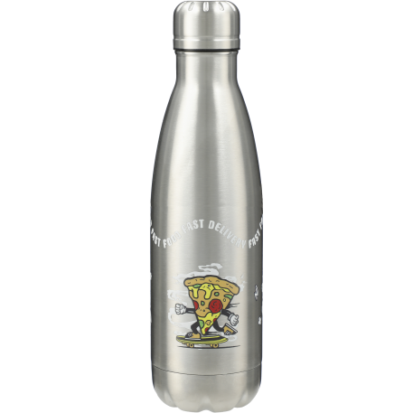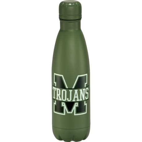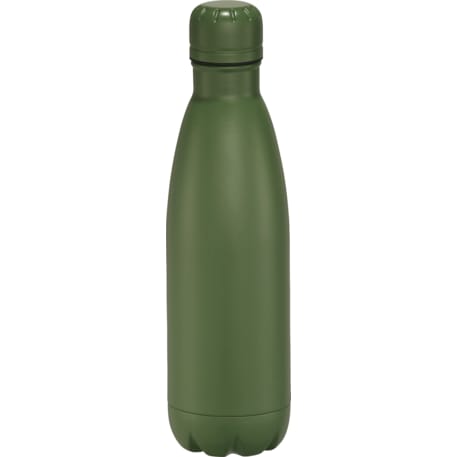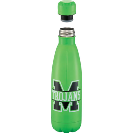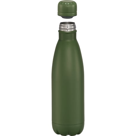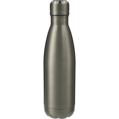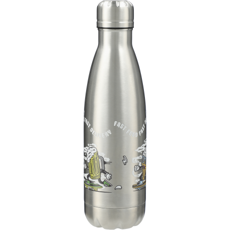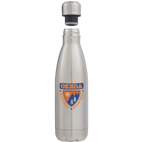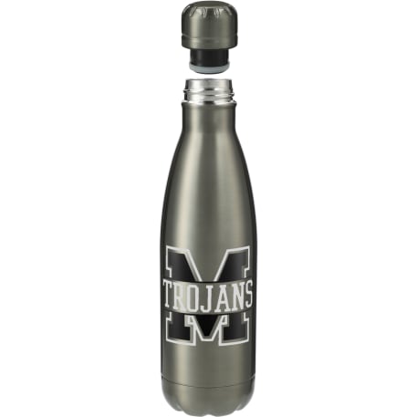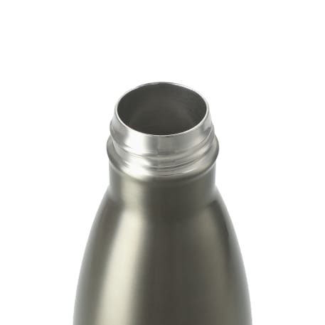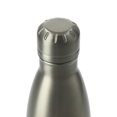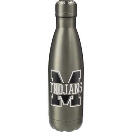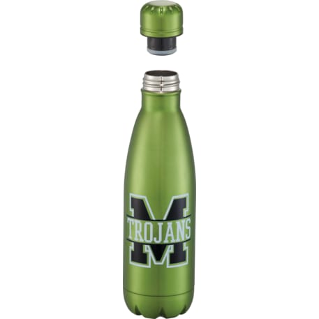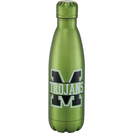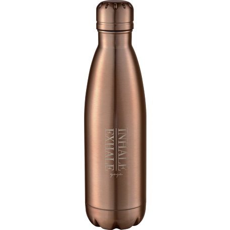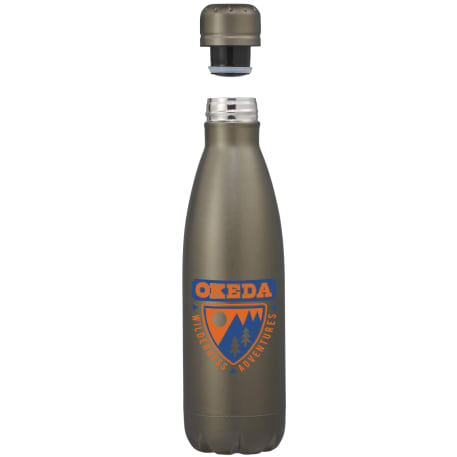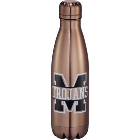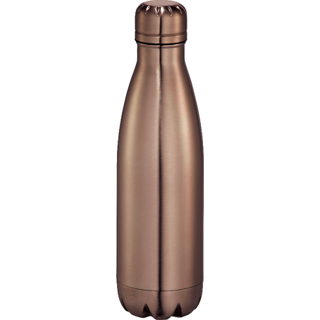 Bottle is double wall 18/8 grade stainless steel with vacuum insulation. Inner wall is plated with copper for ultimate conductivity to keep drinks hot for 12 hours and cold for 48 hours. 17oz.