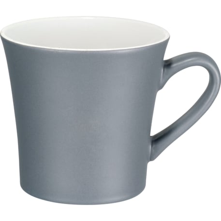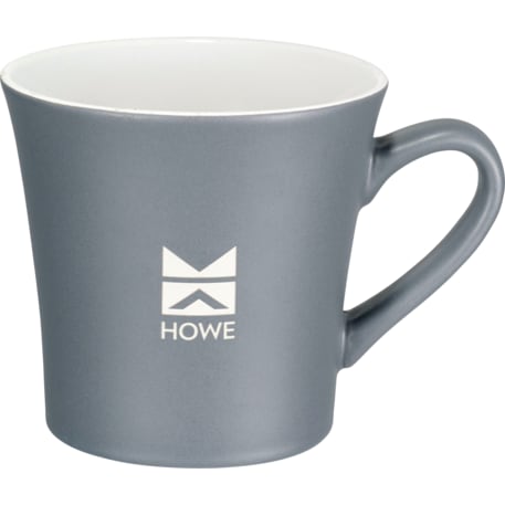 Ceramic mug with smooth matte gray outer wall and brightly colored high-gloss inner wall. Choose between color imprinting or our cutting edge dishwasher safe laser decorating method. Exclusive Leed's design. 12oz.