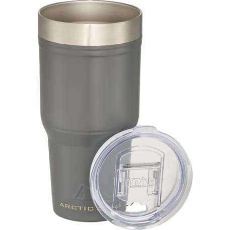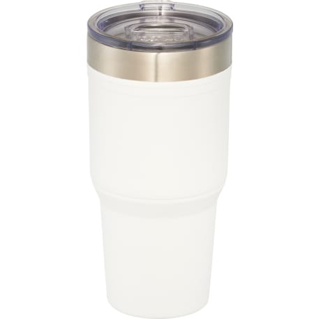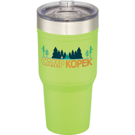 Do not miss the most trendy tumbler of the year. Durable, powder spray color. Double-wall 18/8 grade stainless steel vacuum construction with copper insulation, which allows your beverage to stay cold for 24 hours and at least 8 hours for hot beverages. The construction also prevents condensation on the outside of the tumbler. Easy sipping, push-on lid with slide closure. Wide opening for comfortable filling and pouring. 30oz. Leeds Exclusive.