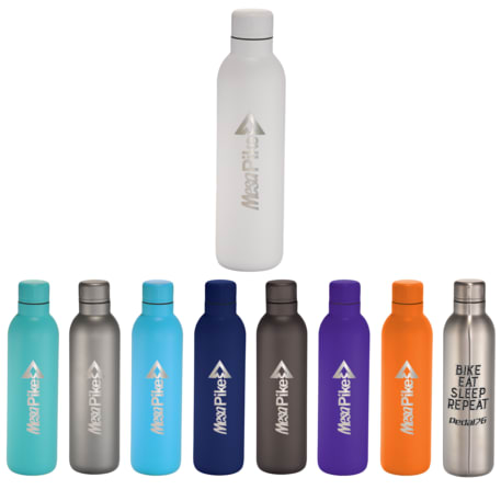 Durable, double-wall stainless steel vacuum construction with copper insulation, which allows your beverage to stay cold for 48 hours and hot for at least 12 hours. The construction also prevents condensation on the outside of the bottle. Features on-trend, durable powder coating. Stainless steel, screw-on, spill resistant lid. Bottle opening diameter: 1.02”(25.9mm). Fits most standard car cup holders. 17oz.