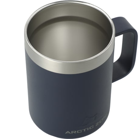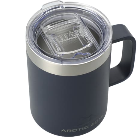 The Arctic Zone® Titan Thermal HP Copper Mug 14oz is one of the most on-trend mugs of the year. It helps you warm up the campfire ambiance while drinking your tea or coffee with this classic camp cup. It features a durable, double-wall stainless steel vacuum construction with copper insulation, which allows your beverage to stay cold for 24 hours and hot for at least 8 hours. The construction also prevents condensation on the outside of the piece. Comes with an on-trend, durable powder coating. Easy sipping, push-on lid with slide closure. The wide opening is comfortable filling and pouring. Gift box dimension: 4.80” x 3.54” x 4.90”. 14oz.