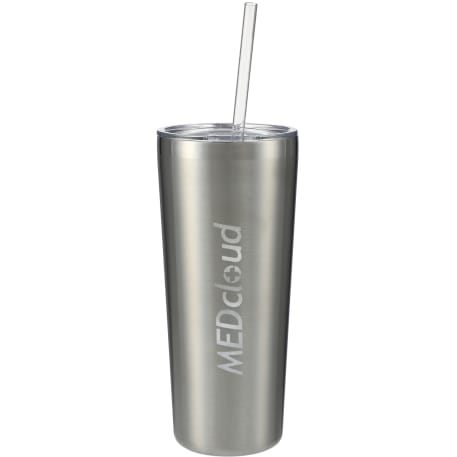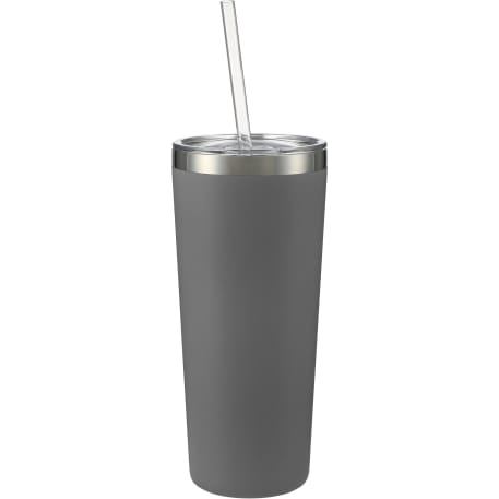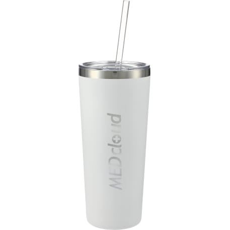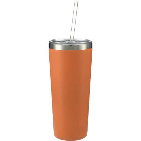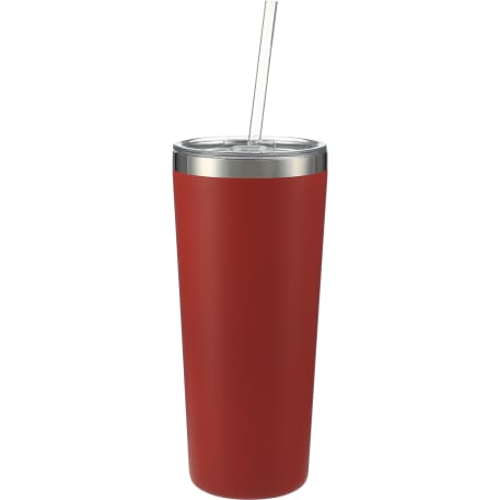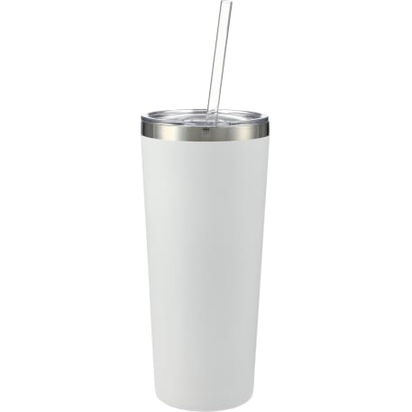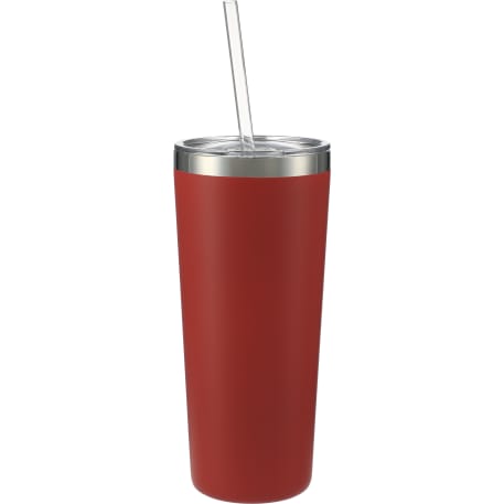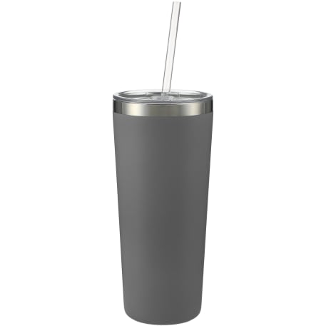 It’s here and just the right size for your daily use! Durable, double-wall stainless steel vacuum construction with copper insulation, which allows your beverage to stay cold for 24 hours and at least 6 hours for hot beverages. The construction also prevents condensation on the outside of the tumbler. On-trend, durable powder coating. Easy sipping, push-on lid. Eastman Tritan™ straw included. Wide opening for comfortable filling and pouring. Fits most car cup holders. 22oz.