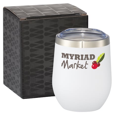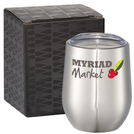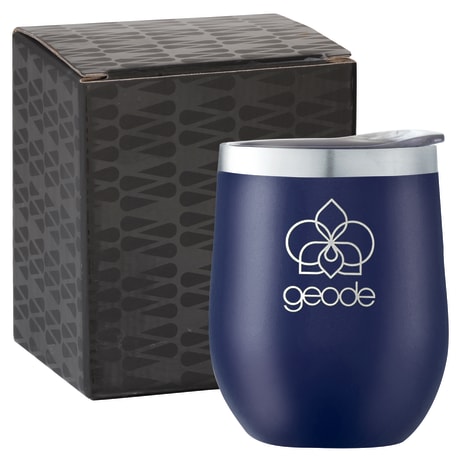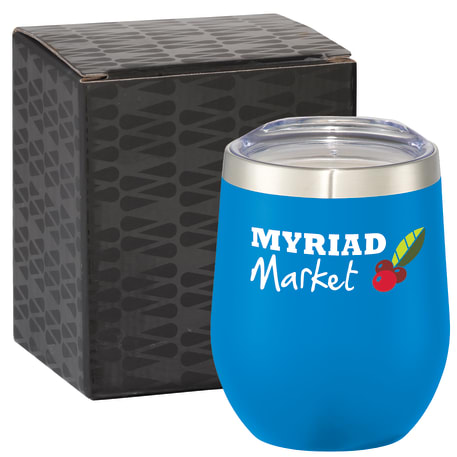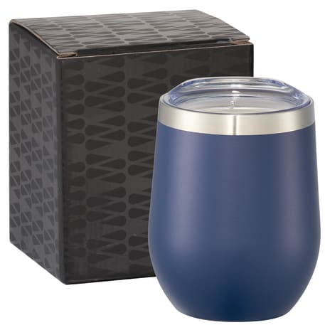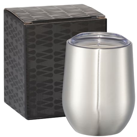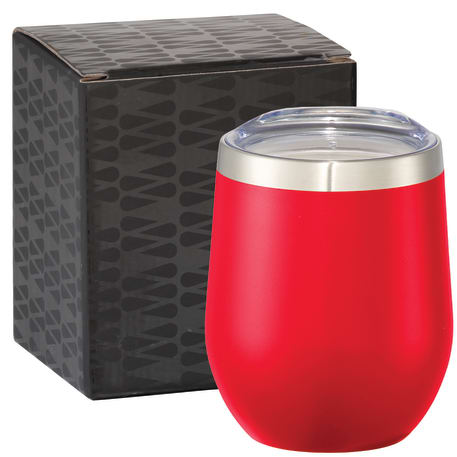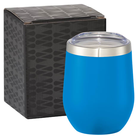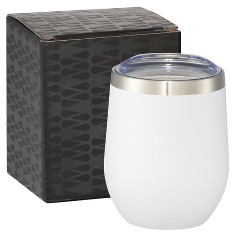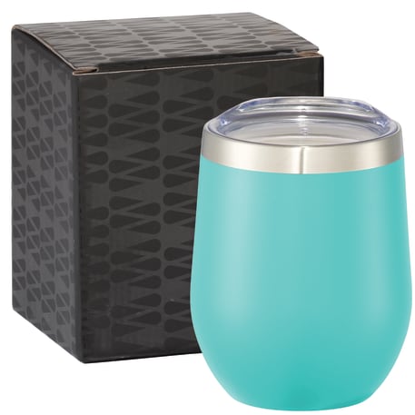 Enjoy your drink at any moment! Durable, double-wall 18/18 stainless steel vacuum construction with copper insulation, which allows your beverage to stay cold for 24 hours and hot for at least 6 hours. The construction also prevents condensation on the outside of the tumbler. Perfect accessory for wine. Easy sipping, push-on lid. Wide opening for comfortable filling and pouring. Durable powder spray color. 12oz. Drinkware is 1625-53. Gift Box size: 93 x 93 x 124mm.