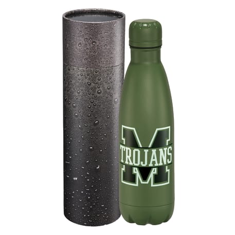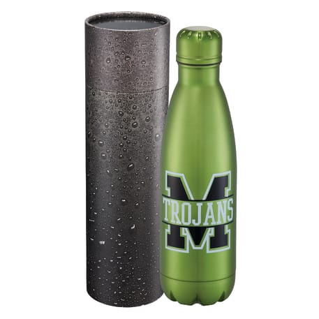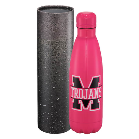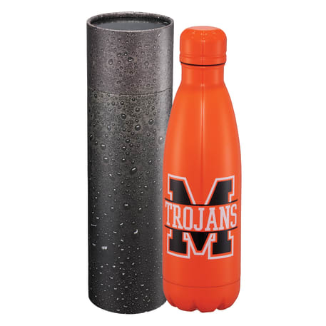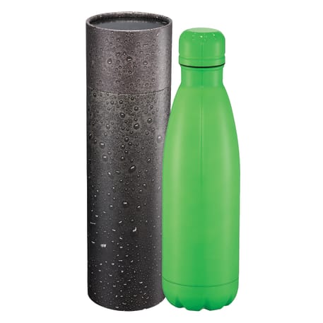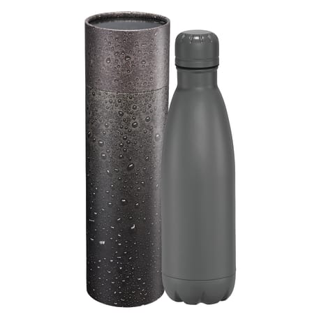 Bottle is double wall 18/8 grade stainless steel with vacuum insulation. Inner wall is plated with copper for ultimate conductivity to keep drinks hot for 12 hours and cold for 48 hours. 17oz. Drinkware is 1624-74.