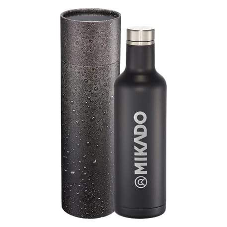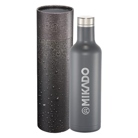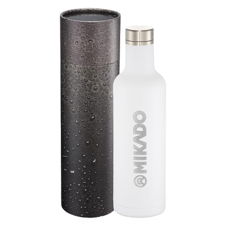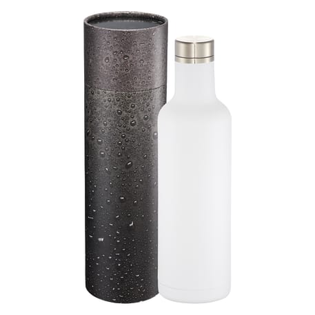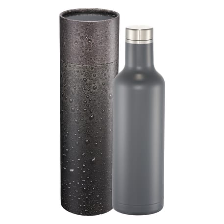 Enjoy your drink at any moment! Bottle is double wall 18/8 grade stainless steel with vacuum insulation. Inner wall is plated with copper for ultimate conductivity to keep drinks hot for 12 hours and cold for 48 hours. Perfect accessory for wine. Durable powder spray color. 25oz. Drinkware is 1625-65.