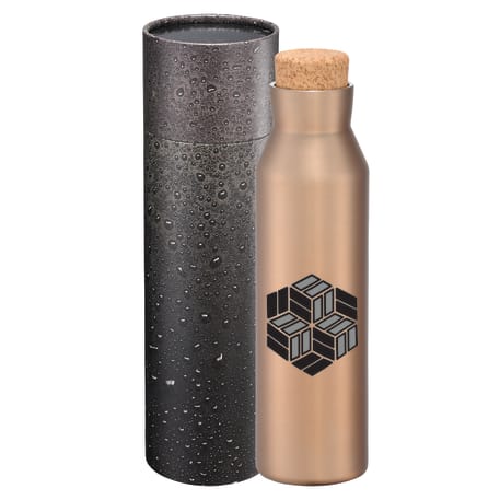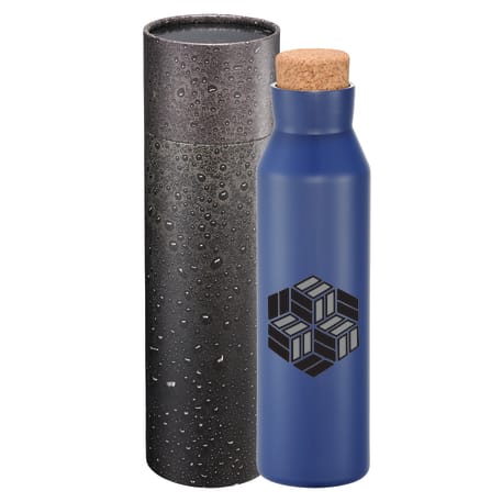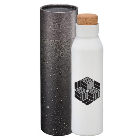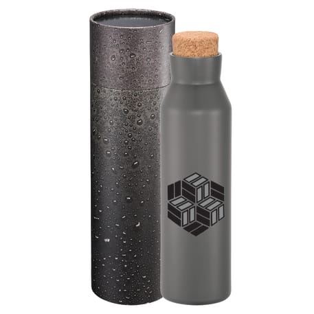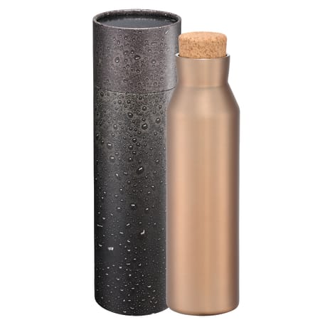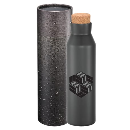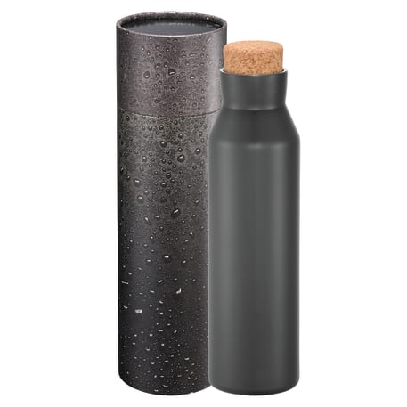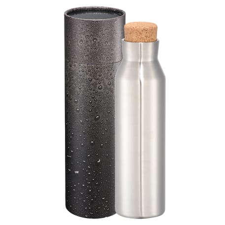 With this innovative cork look, screw-on lid design, your next promotion will be sure to stand out. Durable, double-wall stainless steel vacuum construction with copper insulation, which allows your beverage to stay cold for 48 hours and hot for at least 12 hours. The construction also prevents condensation on the outside of the bottle and the lid is spill resistant. Fits most standard car cup holders. 20oz. Drinkware is 1626-01.