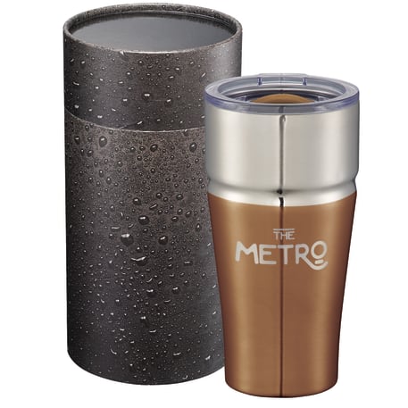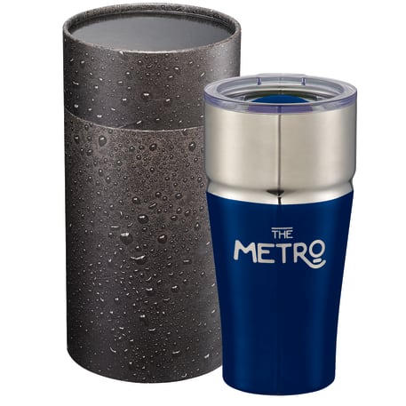 Durable, double-wall stainless steel vacuum construction with copper insulation, which allows your beverage to stay cold for 24 hours and hot for at least 8 hours. The construction also prevents condensation on the outside of the tumbler. Easy sipping, push-on lid with slide closure. Wide opening for comfortable filling and pouring. Leed’s Exclusive. 20oz. Drinkware is 1625-28.