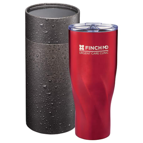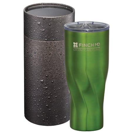 Do not miss the most trendy tumbler of the year. Durable, double-wall stainless steel vacuum construction with copper insulation, which allows your beverage to stay cold for 24 hours and at least 8 hours for hot beverages. The construction also prevents condensation on the outside of the tumbler. Push-on two piece lid with Tritan™ swivel closure, pinch the 2 axis joints slightly to remove the top part of the lid for easy cleaning. Wide opening for comfortable filling and pouring. Design features the spinning, geometric bottom. Leed's Exclusive. 30oz. Drinkware is 1625-09.