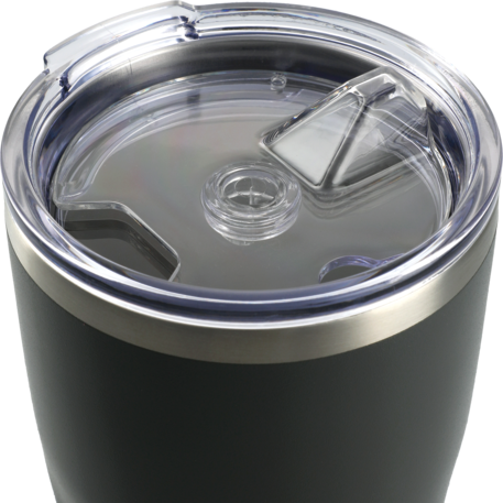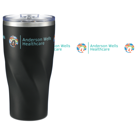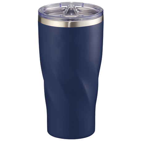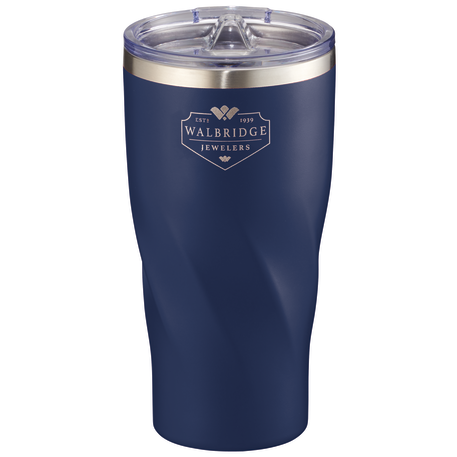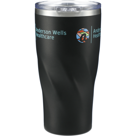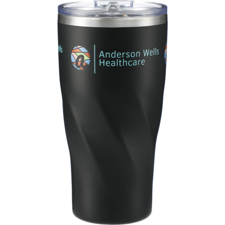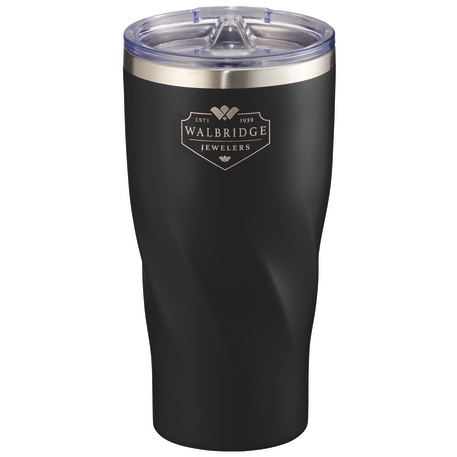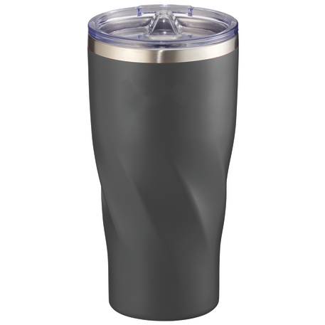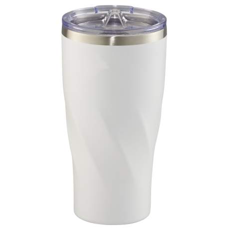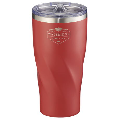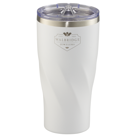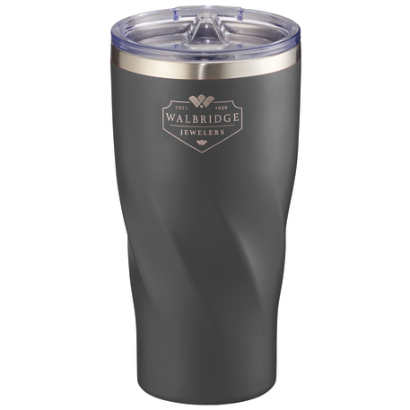 Durable, double-wall stainless steel vacuum construction with copper insulation, which allows your beverage to stay cold for 24 hours and at least 8 hours for hot beverages. The construction also prevents condensation on the outside of the tumbler. On-trend, durable powder coating. Push-on two piece lid with Tritan™ swivel closure, pinch the 2 axis joints slightly to remove the top part of the lid for easy cleaning. Wide opening for comfortable filling and pouring. Design features the spinning, geometric bottom. Leed's Exclusive. 20oz. Laser Plus tier 1 available on all colors. Laser engraving silver Drinkware will result in a subtle, tone on tone decoration.