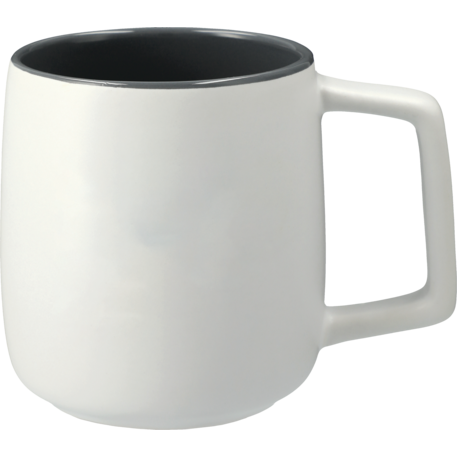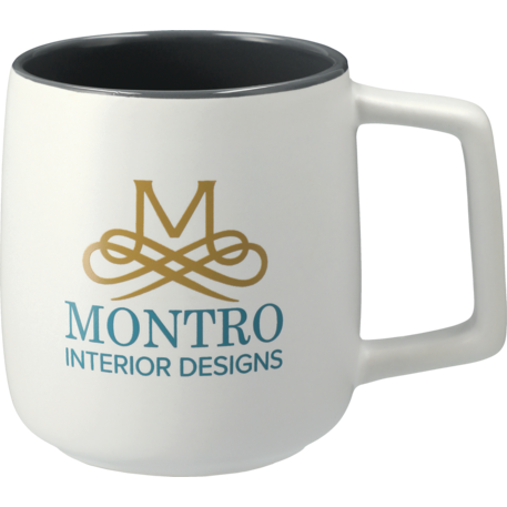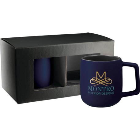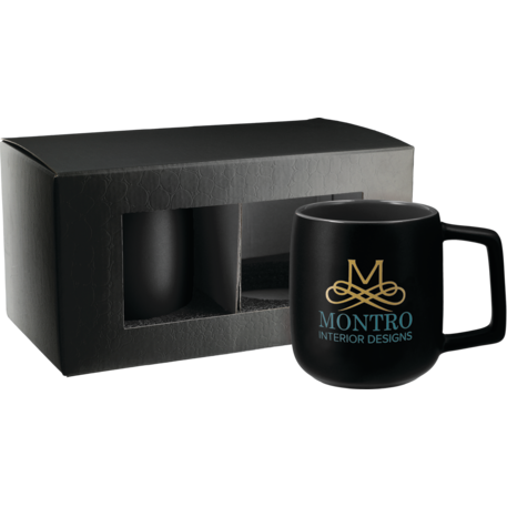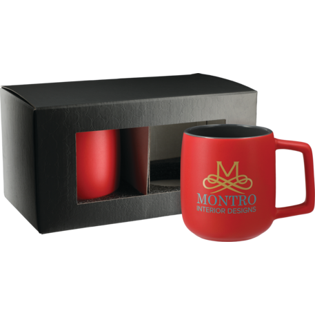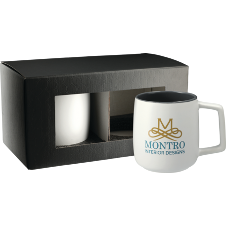 Includes 2 Sienna ceramic mugs 1626-41. Ceramic mug with smooth, matte outer wall and gray colored, high-gloss inner wall. Choose between color imprinting or our cutting edge, dishwasher safe laser decorating method. Leed's Exclusive 14oz. Gift Box is not decorated.