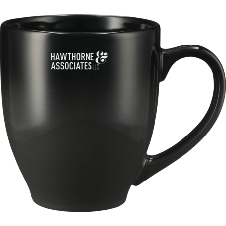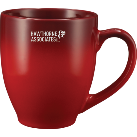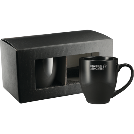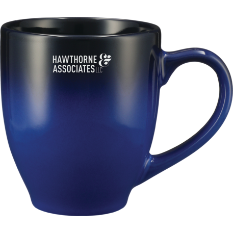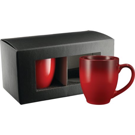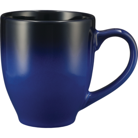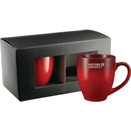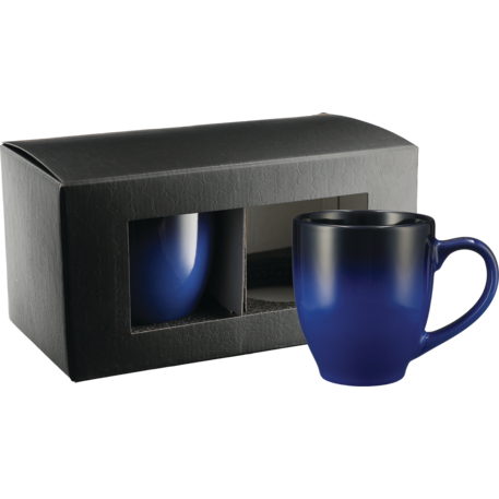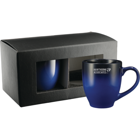 Includes 2 Bistro ceramic mugs 1624-06. Cozy ceramic mug with a glossy finish ando on-trend ombre gradient pattern. Choose between color imprinting or our new cutting edge dishwasher safe laser decorating method. Leed's Exclusive 14oz. Gift Box is not decorated.