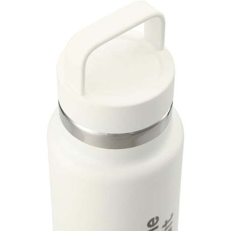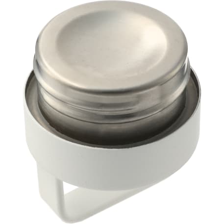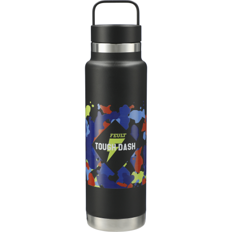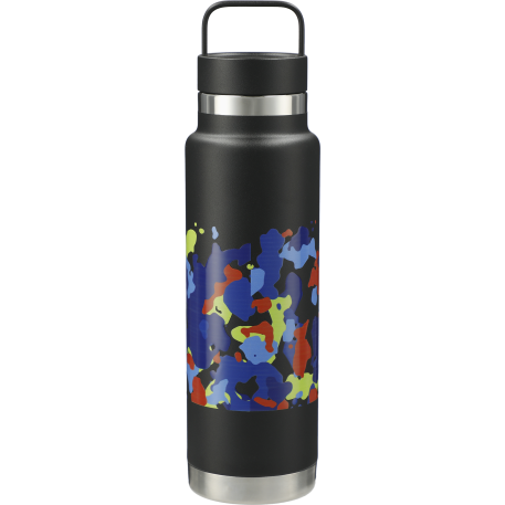 All stainless steel product with silicone gasket. Durable, powder spray coating. Double-wall stainless steel vacuum construction with copper insulation, which allows your beverage to stay cold for 48 hours and at least 12 hours for hot beverages. The construction also prevents condensation on the outside of the bottle. Durable, screw-on, spill proof lid with easy carry metal handle. Wide mouth opening for easy cleaning and filling. Leed's exclusive. 20oz.