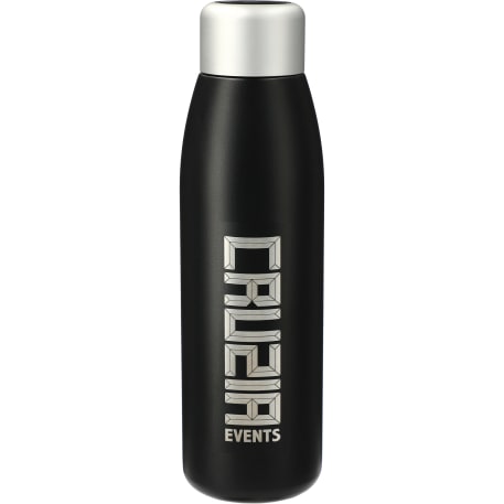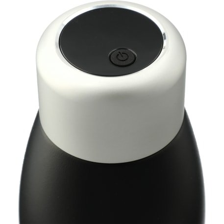 Purification has never been easier! The UV Sanitizer self-cleaning water bottle keeps your water pure and odorless. Portable purification system is built into your water bottle. The mercury-free UV bulb sanitizes 99.9% of the bottle and water to effectively neutralize microbiological contaminants. LCD screen verifies success. Treats 30 cycles with each charge. Durable, double-wall stainless steel vacuum construction with copper insulation, which allows your beverage to stay cold for 48 hours and hot for at least 12 hours. Features on-trend, durable powder coating. Screw-on, spill resistant lid. Fits most standard car cup holders. 18oz. Available for shipment within the United States (including Alaska Hawaii & Puerto Rico). Not available for export.