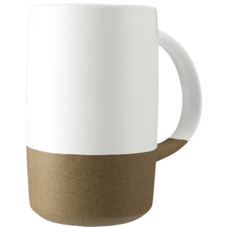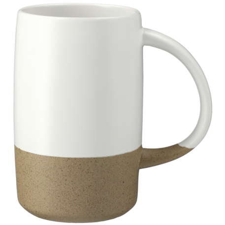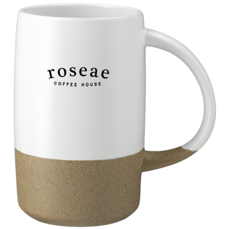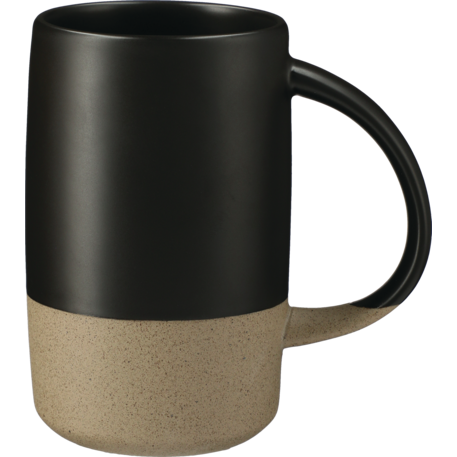 Cozy, two-tone ceramic mug with vintage finish on the body. Choose between color imprinting or our new cutting edge, dishwasher safe, laser decorating method on the Black only. Leed's Exclusive. 17oz. Please note due to the color of the clay, some mugs may very in color.