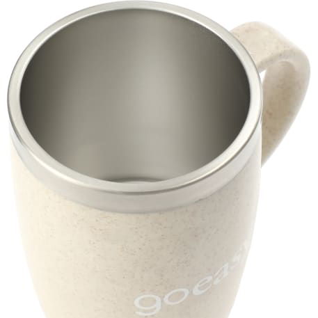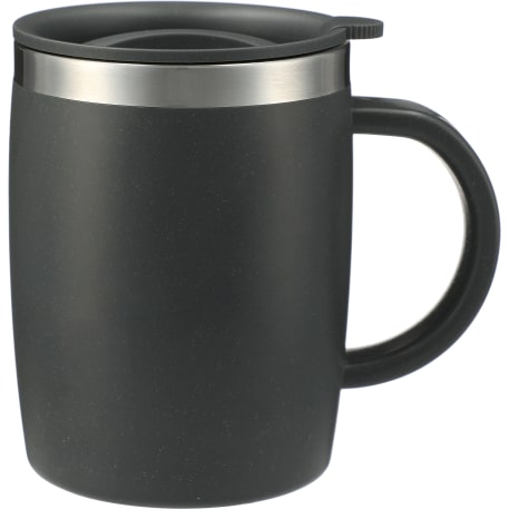 Through a partnership with 1% For The Planet, one percent of sales of EcoSmart products will be donated to nonprofits dedicated to protecting the planet. Push-on lid with twist secure closure. Double-wall construction with stainless steel liner. Outer wall and lid feature wheat straw mixed with plastic. Fits most K cup coffee machines. 14oz.