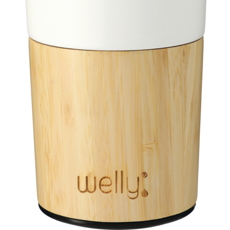 The Welly® Copper Vacuum Insulated Tumbler features durable, double-wall stainless steel vacuum construction with copper insulation, which allows your beverage to stay cold for 24 hours and hot for at least 8 hours. The construction also prevents condensation on the outside of the tumbler. Comes complete with on-trend, durable powder coating and the natural bamboo wrap. It features a screw-on lid with slide closure and a wide opening for comfortable filling and pouring. Perfect for ice cubes. Due to the nature of bamboo and material variance, there might be a slight difference on laser engraved logos. No two pieces are alike which makes each piece unique for you! Leed's Exclusive. 16oz. And it’s more than an awesome bottle. Welly contributes 1% of sales toward construction of wells in areas without clean water. Learn more at wellybottle.com.