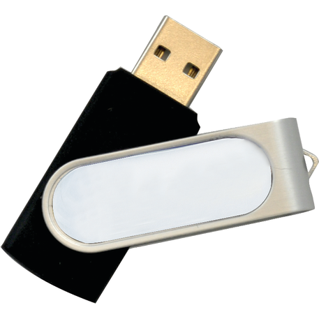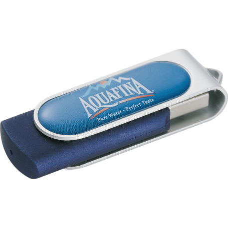 Flash drive folds into a protective aluminum cover. RoHS compliant. Domed decorating method provides logo pop. Plug and play technology on Windows XP or above and Mac OSX or higher.