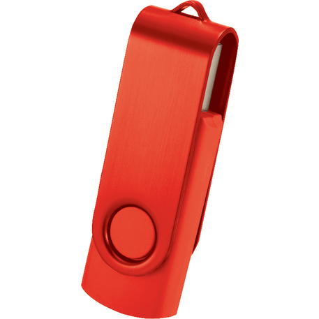 Flash drive folds into a protective aluminum cover. RoHS compliant. Plug and play technology on Windows XP or above and Mac OSX or higher.