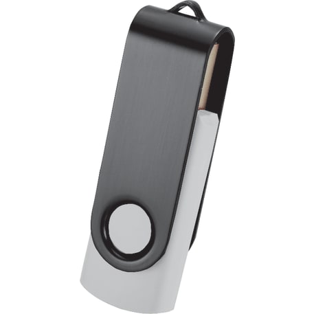 Flash drive folds into a protective aluminum cover. RoHS compliant. Plug and play technology on Windows XP or above and Mac OSX or higher.