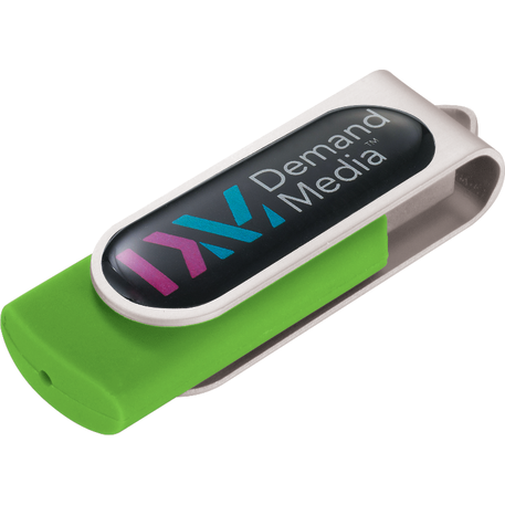 Flash drive folds into a protective aluminum cover. RoHS compliant. Domed decorating method provides logo pop. Plug and play technology on Windows XP or above and Mac OSX or higher.