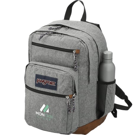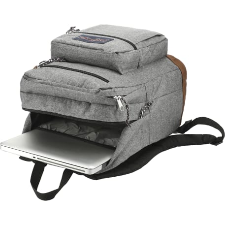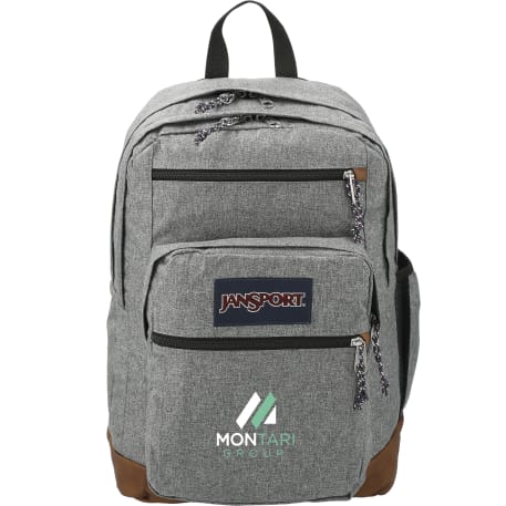 The Jansport Cool Student Backpack is designed for maximum carrying capacity. It features a dedicated 15-inch padded laptop compartment, two large main compartments, a front utility pocket with organizer, pleated front stash pocket and side water bottle pocket. Its stylish exterior features synthetic leather base and trim. It also features ergonomic S-curve shoulder straps, a fully padded back panel and a zippered front stash pocket to keep your gear organized. Go ahead, say it: That's cool.